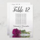 Estas belas cartas de números de mesa facilitarão aos seus convidados encontrar os seus lugares na sua recepção de casamento. Eles apresentam um design simples, mas elegante, com letras de escrita em caligrafia e um solteiro roxo, magenta ou rosa colorido de morango, deitado do lado, refletindo na água. O cartão inclui um quadro de lugares com 10 nomes. Há também espaço para os nomes dos casais e a data do casamento. Esta placa está disponível em vários tamanhos e é maior que nossas placas de números de tabela padrão.