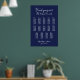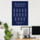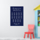 Marinho azul elegante gráfico de assentos de casamento com texto branco e alterável - você pode adicionar o nome de Bride e Groom, a data de casamento e os nomes de convidados (14 mesas para 10 convidados em cada mesa).