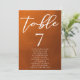 Siga a tendência de outono dos tons de terra com nosso número de tabela de casamento outono de gradiente queimado laranja a castanho com nomes. Simples tipografia branca num cartão rústico para um olhar minimalista. Matizes boêmicos que lembram argila de terracota destacam sua elegante caligrafia nesta marca de cor tendenciosa, de textura esbatida.