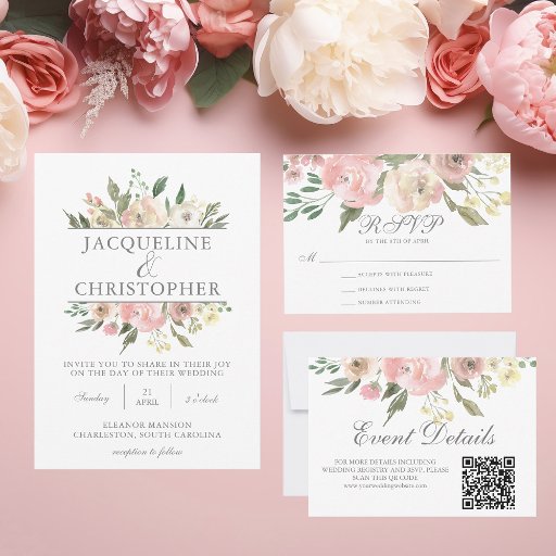 Blush Pink Watercolor Peony Floral Spring WeddingCriado por Elisha Seybold