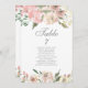 As elegantes flores cor-de-rosa e marfim cor-de-rosa e cor-d'água marfim enquadram o topo e o fundo deste adorável número da mesa de casamento da primavera com nomes de assentos. As manchas de folhas verdes seniores decoram em meio às pedras florais de pêssego que rodeiam a escrita romântica. Um belo buquê de diamante envolve as iniciais do casal na parte de trás deste delicado convite de casamento do jardim.
