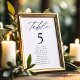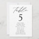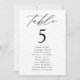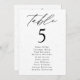 Gráfico elegante de assentos de casamento com "mesa" exibido em script de caligrafia preta com o número da tabela e os nomes de convidados mostrados abaixo em um fundo branco com sutis speck pretos. O design repete atrás. Para solicitar o gráfico de número de tabela, edite cada cartão com o número da tabela e os nomes de convidado e adicione-o ao carrinho. Projetado para coordenar com a nossa coleção de casamento do Modern Elegance.
