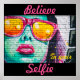 A crença no Grafite de Selfie é um lembrete de ter confiança em si mesmo - acredite em si mesmo. A poster também faz um presente excelente para encorajar amigos e entes queridos a terem autoconfiança. A design apresenta uma pintura de grafite (numa parede de tijolos) de uma mulher a vestir óculos de sol fuchsia. Sua pele é feita em tons de turquesa. O texto diz: "Acredite em sua Selfie" e pode ser personalizado conforme desejado. Verifique a camisa correspondente, cachecol, espelho compacto e muito mais!