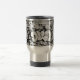 Uma imagem digital escura e branca de uma porta de loja coberta por grafite num edifício condenado em Nova Iorque dá a esta caneca de viagem uma sensação turca e urbana.