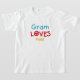 Gram me ama T-shirts, cartas, adesivos, bolsas de fatos-chave, e mais com texto vermelho, amarelo e azul colorido e design cardíaca. Estes vovôs me adoram roupa e presentes farão sorriso de grama!
