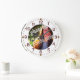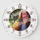 Este divertido relógio de parede personalizado é perfeito para a sua foto favorita. Há uma seção no centro para você adicionar sua própria foto. Basta substituir a imagem de exemplo no modelo por sua. O relógio tem pontos castanhos para os minutos e horas, e números marrons, sobre um fundo branco. Clique em personalizar para alterar o estilo ou a cor da fonte dos números se quiser personalizar o relógio. Mais relógios de parede personalizados no Lápis da Alina.