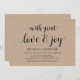 Com grande amor e alegria, cartões de convite de recepção de casamento fugitivo. Este cartão de convite temático de casamento rústico kraft é perfeito para a sua recepção de casamento e festa de celebração pós-casamento. Adicione seus detalhes em fonte / letra preta correspondente.