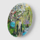 Belo design de relógio de parede com Jesus andando com uma família pelo longo e estreito caminho. Isso vai fazer um excelente de conversa em qualquer sala!