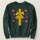 Suéter super feio com arco grande e fita ouro com ornamentos rosa brilhantes. Excelente para uma cara ou garota e faça um presente de excelente! Ilustração desenhada à mão por McBooboo.