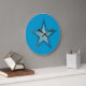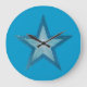 Design moderno com uma estrela azul e branca "brilhante" sobre fundo azul. Relógio com um design personalizável para você personalizar com seu próprio texto, imagens e ideias. Note que esta é uma imagem impressa criada usando fotografias originais e técnicas digitais, que ela não brilha ou contém faíscas reais.