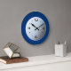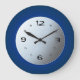 Um relógio refrescante com fundo azul real e centro branco atmosférico. Este design distingue-se por ter números negros e mãos. Disponível em formas quadradas e redondas.
