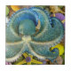 Azulejo ou Trivet com um grande polvo azul que guarda seus Seashells preciosos