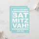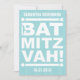 Este convite do Bat Mitzvah põe em destaque o grande dia da sua filha. Linhas horizontais grossas ancoram o tipo grande, cada uma com uma estrela de David. Uma silhueta dançante é encaixada na letra B. E há um grão sutil no fundo, complementado por cores de tendência. Todas as informações impressas podem ser personalizadas com o nome da sua filha e a data do evento... basta preencher os campos!