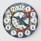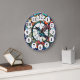 relógio de beija-flor, de pássaro azul de zunido, de flores vermelhas, relógio floral, arte manchada de vidro, natureza floral de mancha de vidro, "belos animais em voo", "asas bonito espalhadas por voadores",