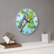 design original de arte de um pássaro azul do leste pela artista aviária Carolyn McFann do Two Purring Cats Studio num relógio de parede de alta qualidade. Excelente de presente para pássaros selvagens e fãs de pássaros!