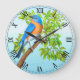 Grande Bluebird oriental no relógio da parede em árvore