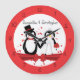 Um relógio bonito de casamentos de pinguins com 2 pinguins, o pinguim da noiva está vestido com um vestido branco de noiva com um carregando de tiara cardíaca um buquê de rosa vermelha e o pinguim do noivo com uma gravata vermelha e um chapéu de cima com uma banda vermelha cercada por corações vermelhos flutuantes com uma faixa vermelha e um arco! Personalize este relógio de parede fofo para um presente de excelente para o seu casal favorito ou mesmo para os seus amantes de pinguins favoritos! Esta design também está disponível como convites de casamento e outras ideias de presentes de excelente!