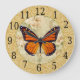 Grande Borboleta Monarca Sobre Relógio De Flores