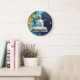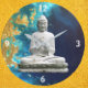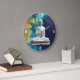 Imagens pacíficas e calmas de um Buda branco flutuando contra um mar calmo de belos blues e tons de ouro. Evocando um sentimento de terra e águas oceânicas, este relógio seria perfeito para uma sala de meditação ou ioga.