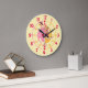 Loura divertida dançando bailarina na parede. Seria um excelente adicional ao quarto de sua bailarina bonito. Relógio rosa e roxo com bailarina dançante. A cor de fundo pode ser alterada para se adequar ao seu quarto, atualmente amarelo pálido. Balé gráfico original e design por Sarah Trett para www.mylittleeden.com