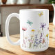 Uma grande caneca com uma vibração de verão de Watercolor flores silvestres e borboletas. Esta caneca pode levá-lo a um humor leve e feliz. Faça como sua caneca do dia a dia ou dê como presente para alguém especial.