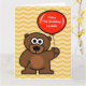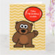 Grande cartão de aniversário extra grande para crianças, personalizado com nome. Cartoon de ursinho de pelúcia bonito segurando um balão vermelho Cartão de aniversário para crianças. Desejos personalizáveis e cor de fundo. Um exemplo engraçado de urso com cartão de saudação XL gigante. Mande um para sua filha, filho, neto, neta, netos etc. Belo plano de fundo da faixa de zague em ziguezague.