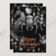 Feliz cartão de Halloween com uma aranha assustadora na web. Personalize facilmente este cartão de Halloween com seu nome de família e texto.