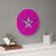Design moderno com uma estrela rosa e branca "brilhante" num fundo rosa. Relógio com um design personalizável para você personalizar com seu próprio texto, imagens e ideias. Note que esta é uma imagem impressa criada usando fotografias originais e técnicas digitais, que ela não brilha ou contém faíscas reais.