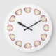 Red White Heart, White Background Clock Um relógio com corações brancos bordados vermelhos como marcadores numéricos em um fundo branco. A cor de fundo pode ser personalizada para outra de sua escolha. (Clique em "Personalizar"), escolha "fundo" no menu de edição.