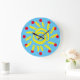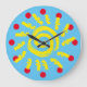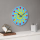 Azul brilhante, amarelo e vermelho cobrir a face deste relógio artístico. Perfeito para qualquer sala que seja cheio de alegria e energia lúdica. Escolha tamanho e forma, redondo ou quadrado!