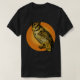Uma grande coruja em laranjas vibrantes e em ouro está majestosa antes de uma lua alaranjada enorme. A coruja é um símbolo mystical, um símbolo da sabedoria, e uma criatura surpreendente. Personalize seu tshirt da coruja com seu próprio texto, ou mude as cores do fundo nas canecas, em botões, em ímãs e em outros produtos da coruja. Disponível em tamanhos dos adultos e dos miúdos em greenbaby!