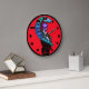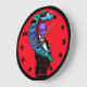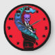 Você nunca encontrará um relógio como este em nenhuma loja. Cores loucas e selvagens, um design espetacular com um esqueleto em um smoking, um pavão, um coquetel. Vermelhos brilhantes, blues e roças tornam este relógio tão único. Segure-o em um bar doméstico, ou em qualquer lugar que você queira um relógio de parede selvagem, estranho e legal. Disponível em dois tamanhos de relógio redondo, ou um relógio quadrado. Copyright Scarebaby Design.