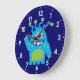 Relógio de arte gráfica com um amistoso monstro verde-alienígena azul. Excelente de adicionar humor num quarto infantil.
