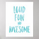 Crianças divertidas e incríveis impressão apresentam tipografia moderna escrita à mão em azul-d-água. Excelente para um quarto infantil e combina com um estilo de decoração escandinavo.