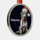 Um adorno de feriado divertido mostra um grande cão dinamarquês com chapéu de Papai Noel. Adicione um toque personalizado com o nome do cão ou outra mensagem especial. Excelente de presente para amantes de cães!
