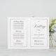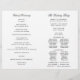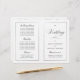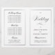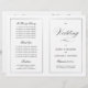 Este programa é uma página 8.5 x 11 que requer que você o dobre para montá-lo. A borda da linha desaparece no canto e isso é intencional para corresponder ao estilo do script. Programa clássico de casamento preto e branco, subestimado, com um toque moderno, com a elegante escrita da palavra "Casamento" no "cobrir" externo.