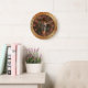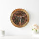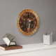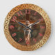 Este relógio tem uma cruz arborizada com Jesus pendurado nele e um fundo castanho. Esta é uma foto antiga do início de 1900