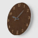 Este relógio apresenta um design de fundo rústico que mostra um grão de madeira realista em tom de madeira manchada escura. As horas são marcadas em números bronzeados em uma fonte ocidental e com pequenas marcas de escala preta. Este relógio é personalizável, para que você possa alterar a fonte, remover os números, remover as linhas, adicionar seu próprio texto ou fazer quaisquer outras alterações que desejar para um relógio exclusivo. Use este relógio como está ou personalize para um presente personalizado.