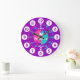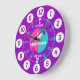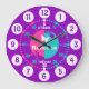 Codificado colorido do relógio gráfico de parede para ajudar seu filho a ler um relógio. Este apoio pedagógico colorido inclui minutos e horas e passadas e a brincadeira de fazer da criança de contar o tempo. Clock colorido em rosa, roxo, aqua e branco com uma borboleta branca e pode ser personalizado com seu nome de preferência. Atualmente, lê Rebecca. Projetada exclusivamente por Sarah Trett. Um excelente para o quarto de uma garotinha que está aprendendo a ler um rosto do relógio.