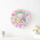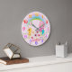 Adicione um nome para personalizar esta princesa divertida de sereia unicórnio no berçário temático, relógio de quarto. Apresenta arco-íris, cavalo marinho, concha e flores bonito de cor-de-água em tons de roxo rosa e azul. Meninas que amam todas as coisas oceano, mar, sereia e unicórnio vão adorar este relógio bonito.
