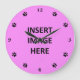 Crie um relógio de parede exclusivo adicionando suas próprias imagens com este modelo fácil de usar. O relógio tem letra preta no estilo da caligrafia para os números 12, 3, 6 e 9, e impressões de pata preta para os números entre eles.