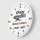Esta madeira humorística que torna o design personalizável relógio de decoração caseira, bonito, resume muito a vida de um lenhador. Diz, "maluco, obcecado... Quem, eu?" Há diferentes estilos de letra para cada palavra. <br>() Você pode adicionar uma cor de fundo se quiser ou alterar as palavras ou fontes. Há pontos marrons para os minutos. Você pode excluir esses números ou alterar a cor ou o estilo dos números. <br>() Decorre sua caverna ou compro, e mostre seu amor por um passatempo de madeira ou de madeira. Ou dar um presente ao seu marido, amigo ou parente obcecado preferido. <br>() Você pode pegar esse design engraçado em outros produtos, incluindo t-shirts, aventais, canecas (com tampa, para que as aparas não caiam) e cartões de visitas. Mais presentes para torcedores de madeira no Lápis de Alina.