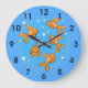Este encantador relógio de parede apresenta cinco adoravelmente fofinhos peixes laranja-dourados, desenhados num estilo brilhante de desenho animado rodeados de bolhas. Excelente para o amante dos peixes dourados!