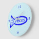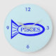 Este relógio fantástico mostra um esboço de um peixe azul com um bonito dentro de detalhes. Há também um texto que diz aos Peixes o esboço do peixe. Este design é ideal para pessoas com aniversários entre 19 de fevereiro e 20 de março.