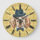 Percival é um Labrador Retriever que implora ser levado a sério...daí o chapéu do rico e o arco. Retrato digital de cachorrinho em fundo padronizado com ouro