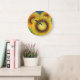 Os girassóis brilhantes decoram este relógio de parede. A design é de uma ilustração original.