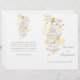 Desenho gráfico gráfico de linha de casal de aves, de jaula aberta de aves pendurada numa primavera com corações, florescente. Design de casamento moderno da gaiola de pássaros, papel de carta de casamento romântico. Bonito tom brilhante cinza amarela e quente no papel branco. Edite este programa de casamento com seu próprio nome, datas, texto da cerimônia, assistentes de festa de casamento e obrigados. Um programa elegante simplesmente substitui o texto da amostra por seus detalhes de informações de casamento e programas dobrados ao meio na entrega. Desenho exclusivo e design por Sarah Trett.