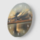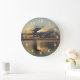 Este relógio do pôr do sol é realmente um dos mais únicos que você encontrará. O design do relógio apresenta os raios do sol a espreitar por detrás das nuvens no pôr do sol sobre a água. Todas as cores adoráveis estão refletidas na água para fazer um relógio de parede do pôr do sol verdadeiramente espantoso. Copyright Kathy Henis