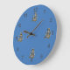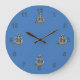 Âncoras de cinza com cabos de ouro. Quatro imagens em 12, 3, 6 e 9 posições. Os números das cinzas com contornos pretos estão no círculo externo. Todas as imagens têm uma sombra de gotas, 3 d. A cor de fundo do azul médio pode ser personalizada.