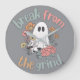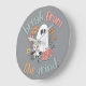 Um relógio com a frase "Break from the Grind" em letras negrito, acompanhado de um gráfico de um fantasma bonitinho de Halloween adornado com flores coloridas, criando um design festivo e caprichoso.